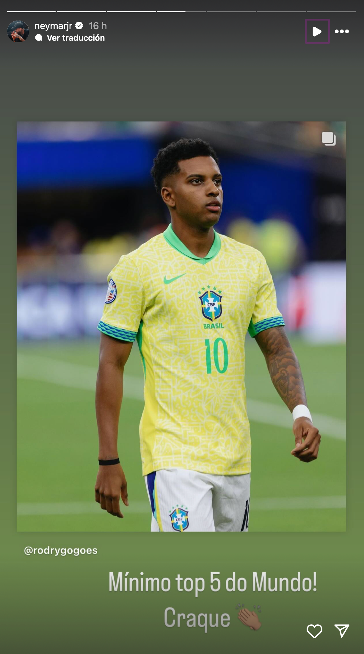 "At least top 5 in the world. Crack," commented the former FC Barcelona player, along with a photo of Rodrygo in the Brazil jersey. While Neymar's support won't change the controversial list, it will certainly provide some comfort to the young forward.