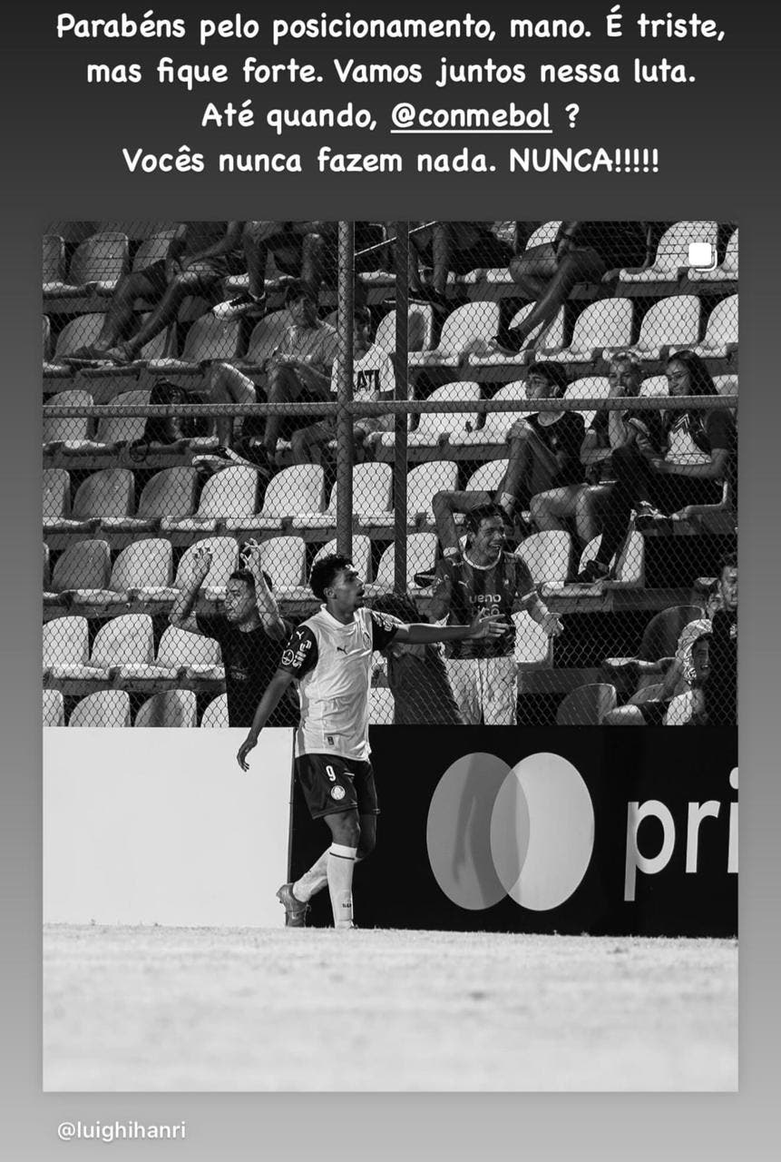 Following Palmeiras' 3-0 win over Cerro Porteño, Luighi Hanri publicly denounced the racism he faced and called for stronger action: