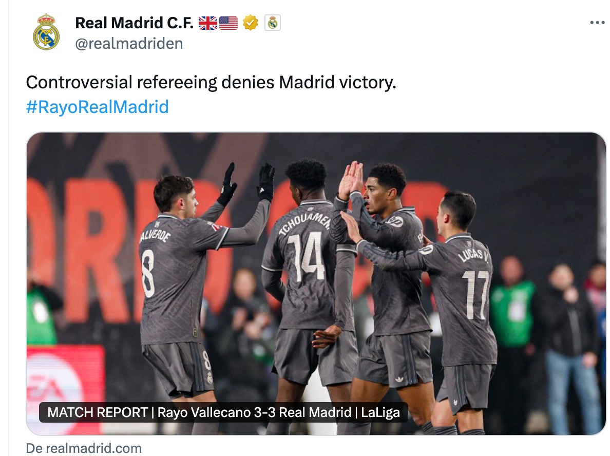 "Controversial Officiating" – Real Madrid's Public Complaint