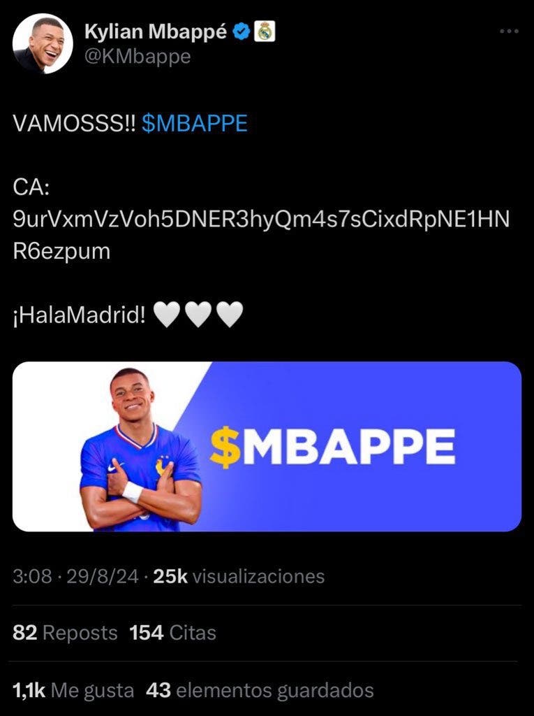 While Kylian Mbappé was resting in the early morning in Spain, his account was hacked. The world noticed when his 'X' account posted multiple messages about a cryptocurrency called '$MBAPPE.'