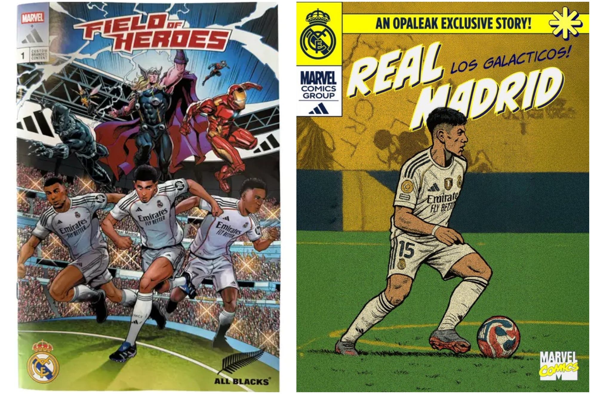 The plot unfolds between an epic Santiago Bernabéu and the training grounds in New Zealand, where athletes and superheroes fight side by side to defend their home turf. Each purchased item comes with this comic, turning the collection into a coveted piece for collectors.